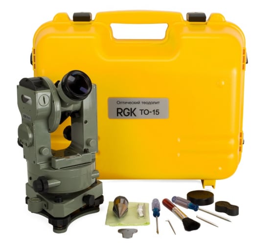 Универсальный инструмент для измерения углов, оптический теодолит RGK TO-15 относится к классу технически точных приборов и хорошо подходит для решения общестроительных, землемерных и большинства геодезических задач. Среднеквадратическая ошибка измерения как горизонтально, так и вертикального угла одним приёмом для RGK TO-15 составляет 15”. В отличие от электронных аналогов, оптический теодолит полностью энергонезависим и устойчив к большинству вредных внешних факторов.